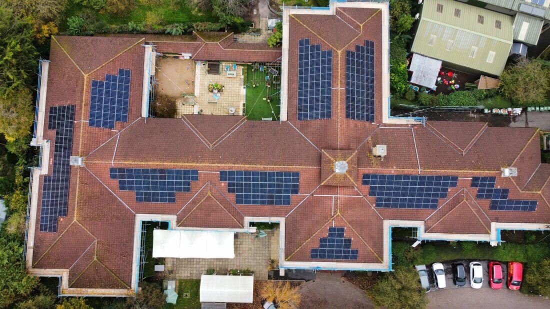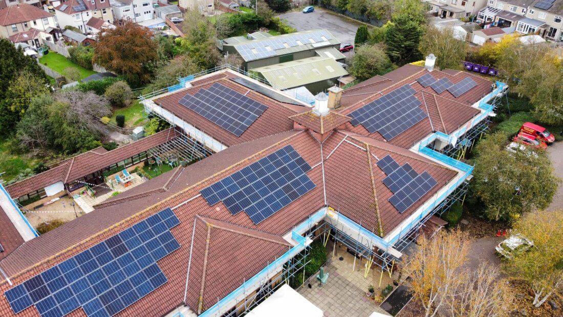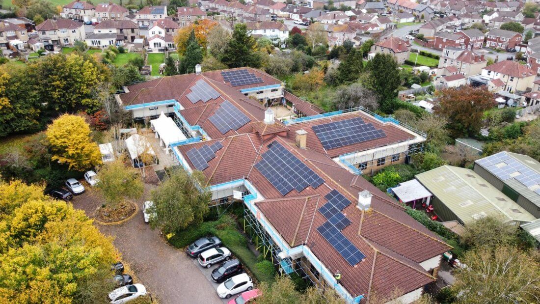Care of this kind requires significant electricity, with a TV and nurse call system in each room, building lifts and charging for laptops and other equipment, so we were delighted to have the opportunity to design and install solar for Deerhurst, working with Bristol Energy Co-operative and Brunelcare.