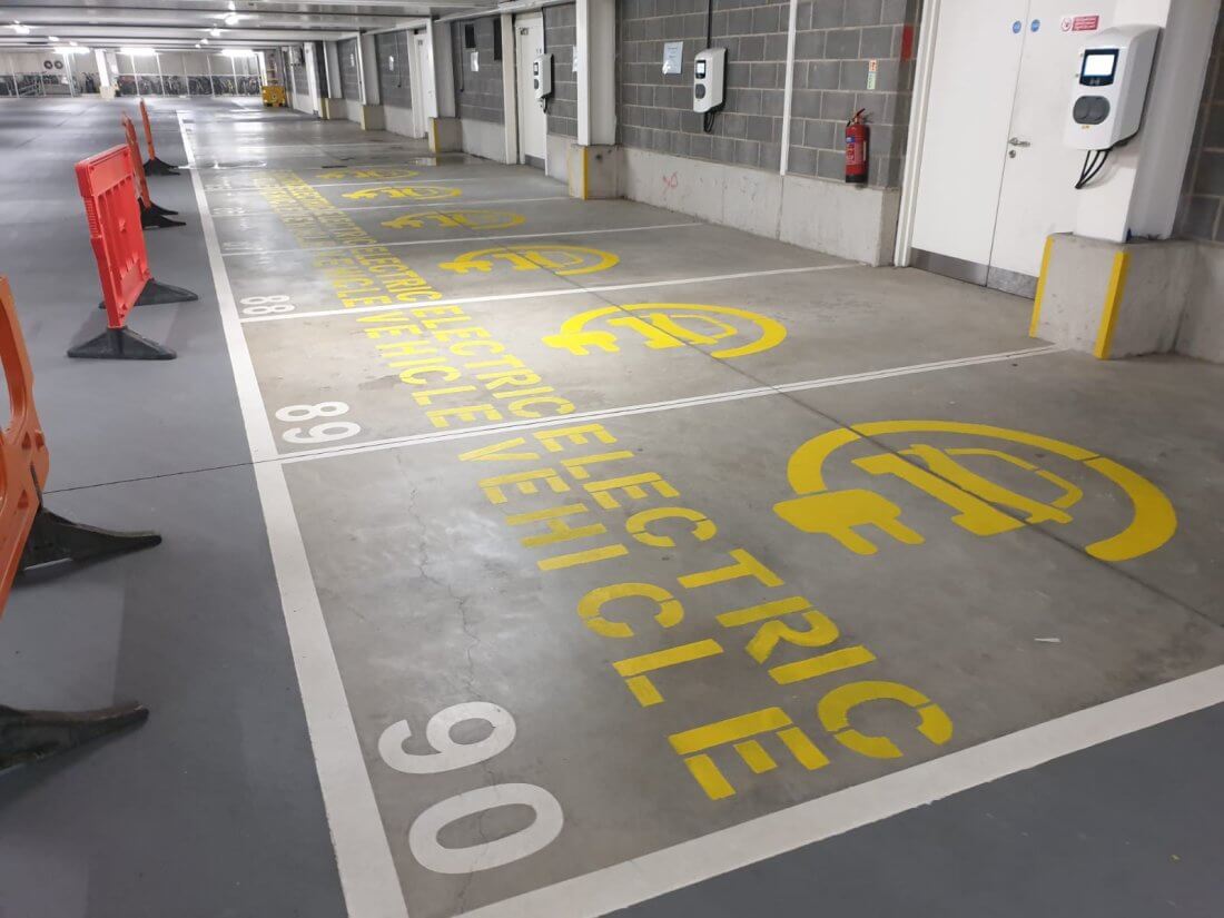 The flagship site in the programme is the Wellgate multi-storey car park, which features 5 dual Alfen Eve charge points, 87kW of solar PV and 3 Tesla Powerwall’s for storage. The solar PV was hosted in a unique way, on the top deck of the multi-storey. “It’s an odd feature of almost every multi-storey car park in the country that no-one parks on the top-deck”, says Steve. “They’re massively underutilised assets, so we took the decision to close the top deck and use this space for generating solar electricity.”